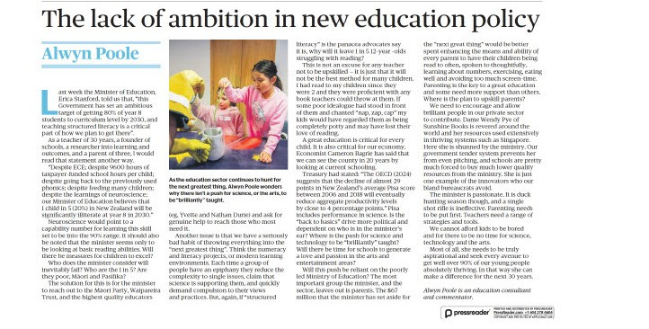 Yesterday I had a piece in The Post and The Press on reading policy in NZ. We need to be far more aspirational.